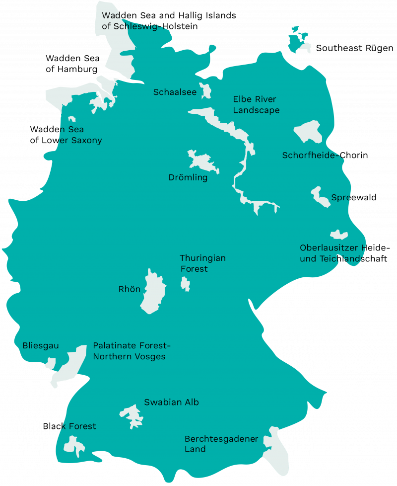 The 17 areas represent important German landscape types and are characteristic of the diversity of habitats, fauna and flora in this country. Biosphere reserves are rarely “original” biotopes - much more often they are cultural landscapes of particular importance for the preservation of biodiversity: their particular ecological wealth has been created through economic exploitation, for example grazing or vine growing - and can only be obtained through economic exploitation.